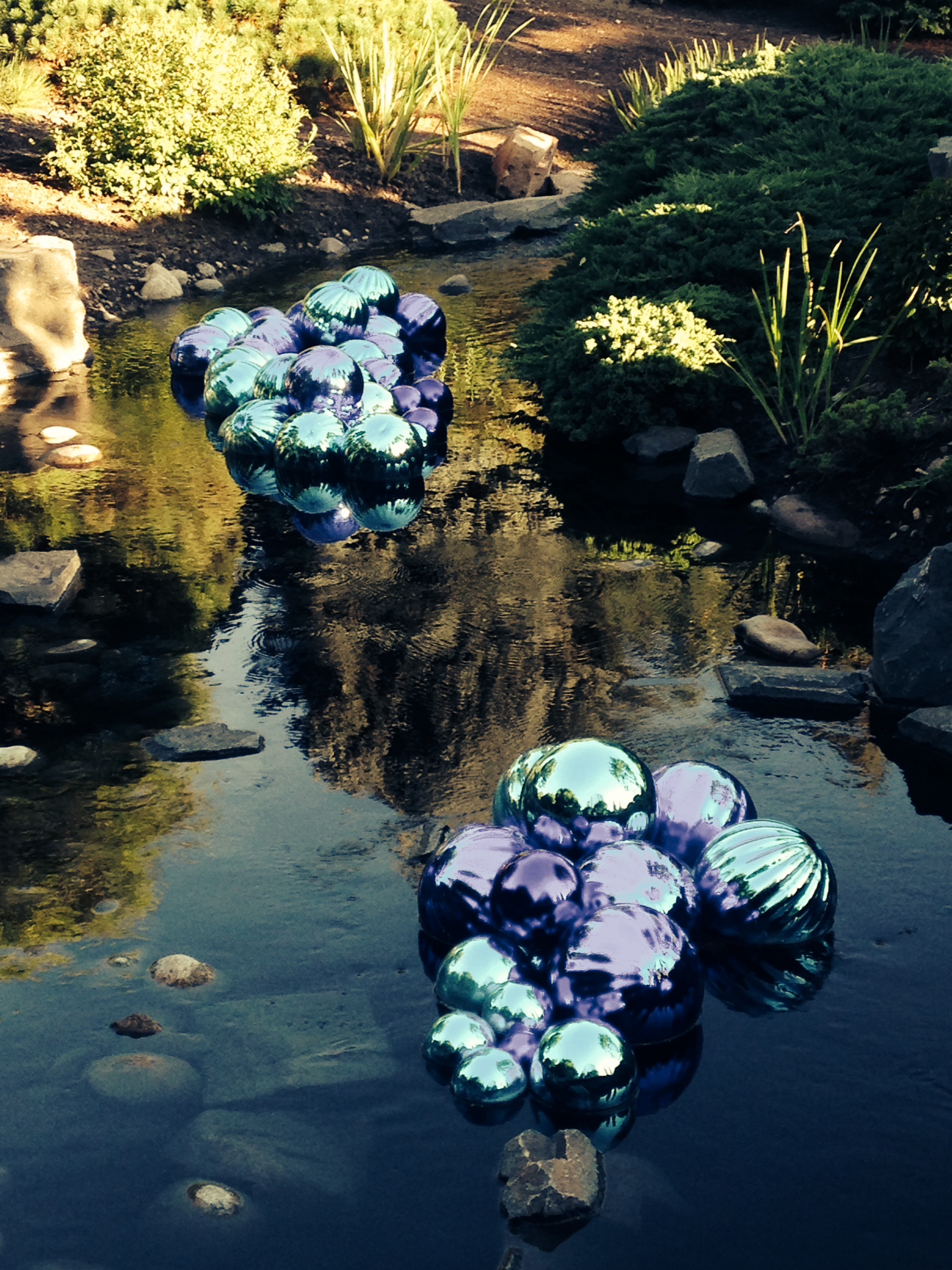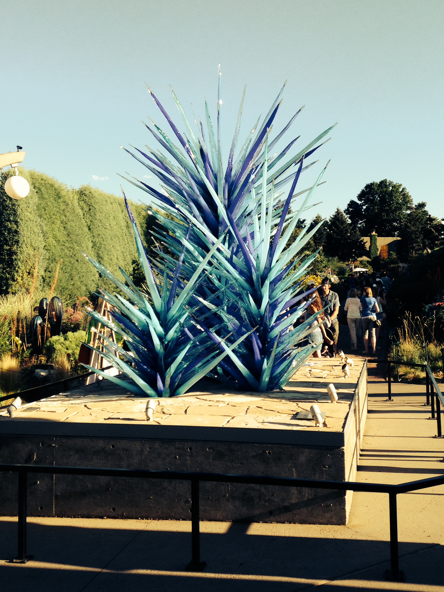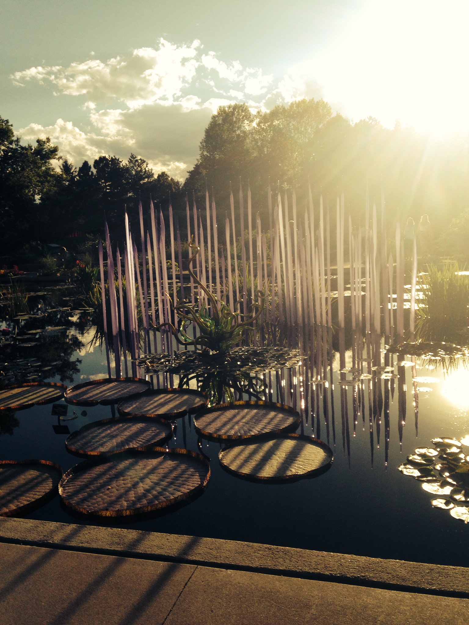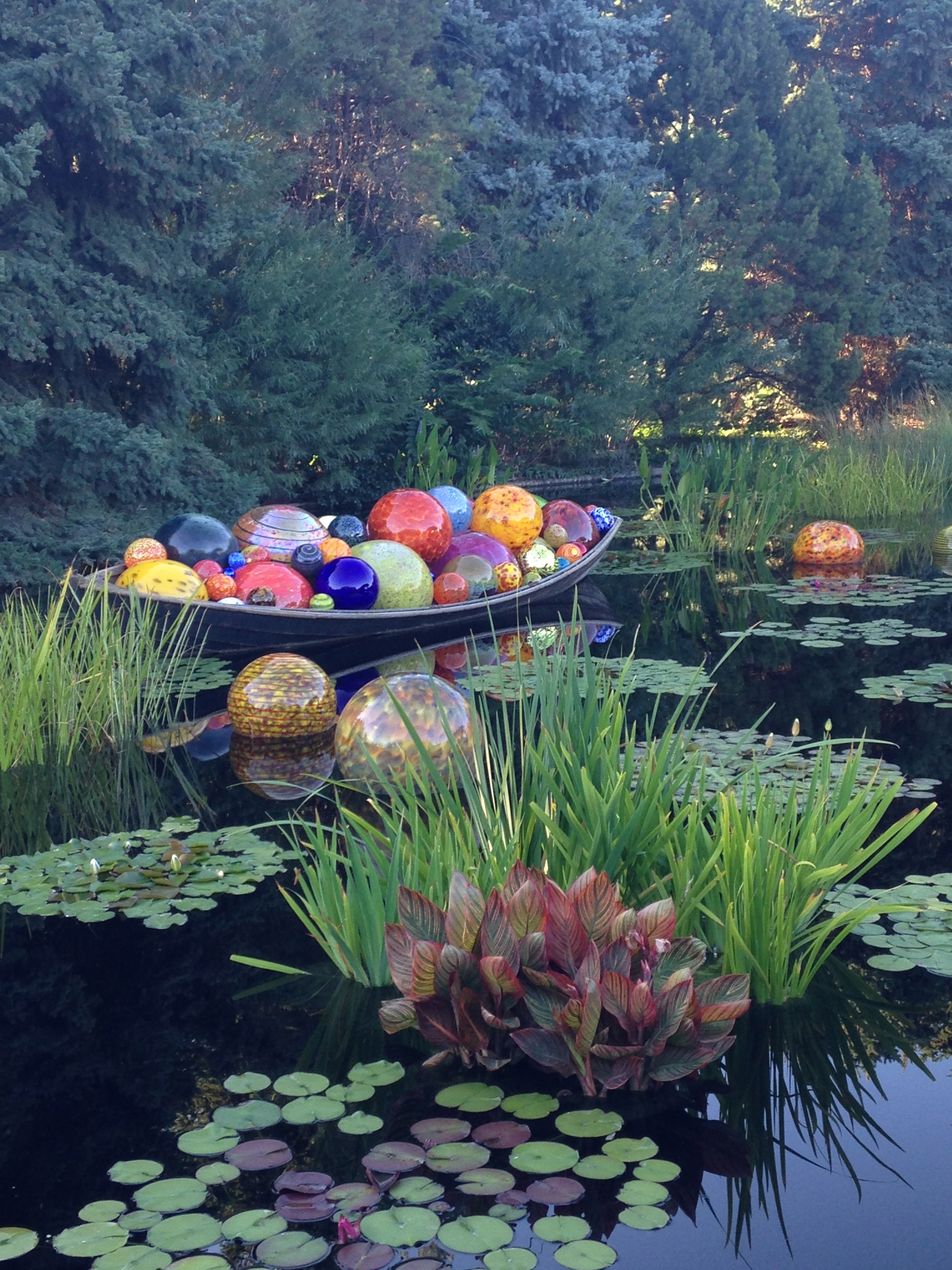 The Denver Botanical Gardens was my fist time seeing the glass sculptures incorporated into the natural landscape. The pieces fit so beautifully with the flora and fauna that it was sometimes hard to tell weather you were gazing at a plant or stalk of Chihuly glass. Seeing the gardens in bloom accentuated the flowers because you could see that every shade of the glass matched the surrounding growth. The two water installments were beyond gorgeous with the old carved wooden boats contrasting the light and modern glass. The reflection of the glass in the pools of water was also stunning, as it added to the natural fluidity of the glass. Our attempt had been to see the gardens at the gloaming period so we could see them transition from light to dark. We saw a few pieces lit up but came a bit to early to stay for the overall effect. I have heard it is magical so if you take a trip down to the gardens I strongly encourage you to go around 7 o’clock.